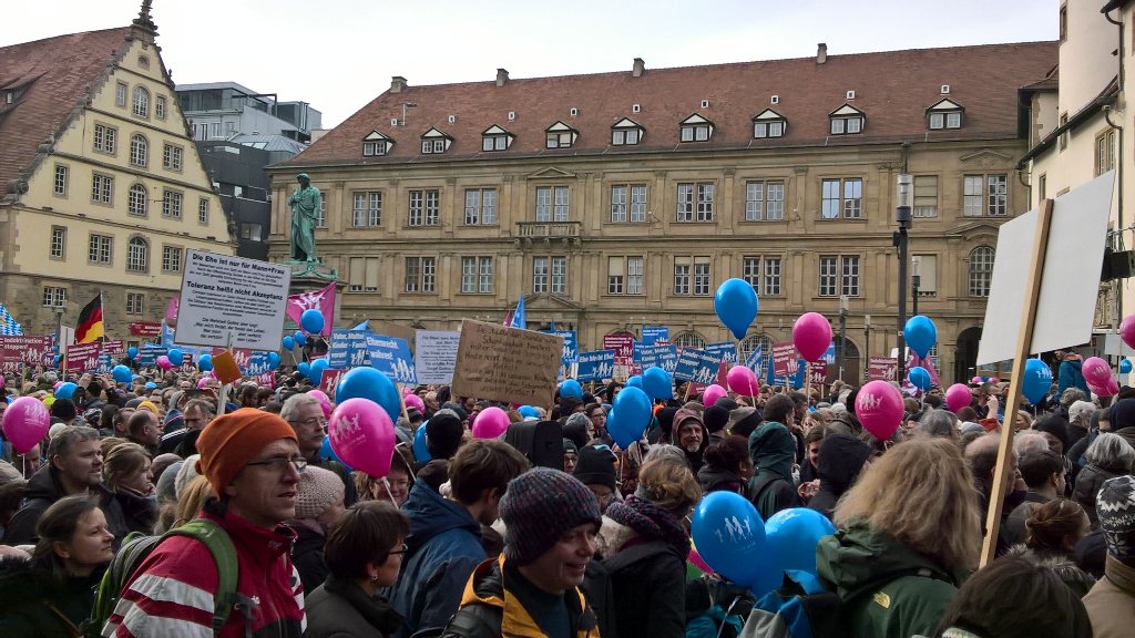 4,5 ათასი ადამიანი შეიკრიბა შტუტგარდის ცენტრალურ მოედანზე – დევიზით: „შეაჩერეთ ჩვენი ბავშვების გენდერული იდეოლოგიზირება და სექსუალიზაცია”.